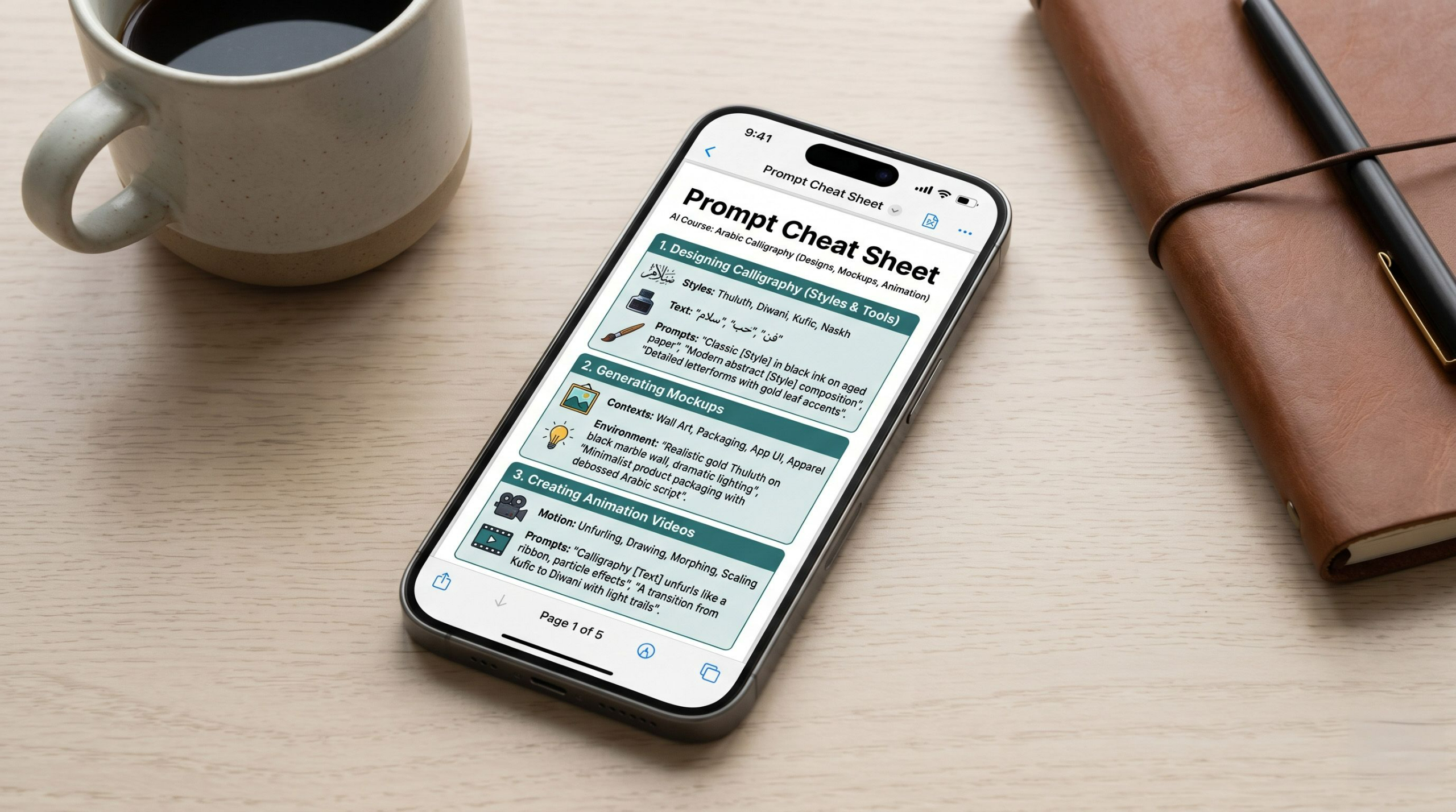 Remove the guesswork entirely. Download the exact text formulas required to generate traditional Arabic scripts. You receive copy-and-paste commands for structural lettering, lighting setups, material finishes, and cinematic camera controls on launch day.